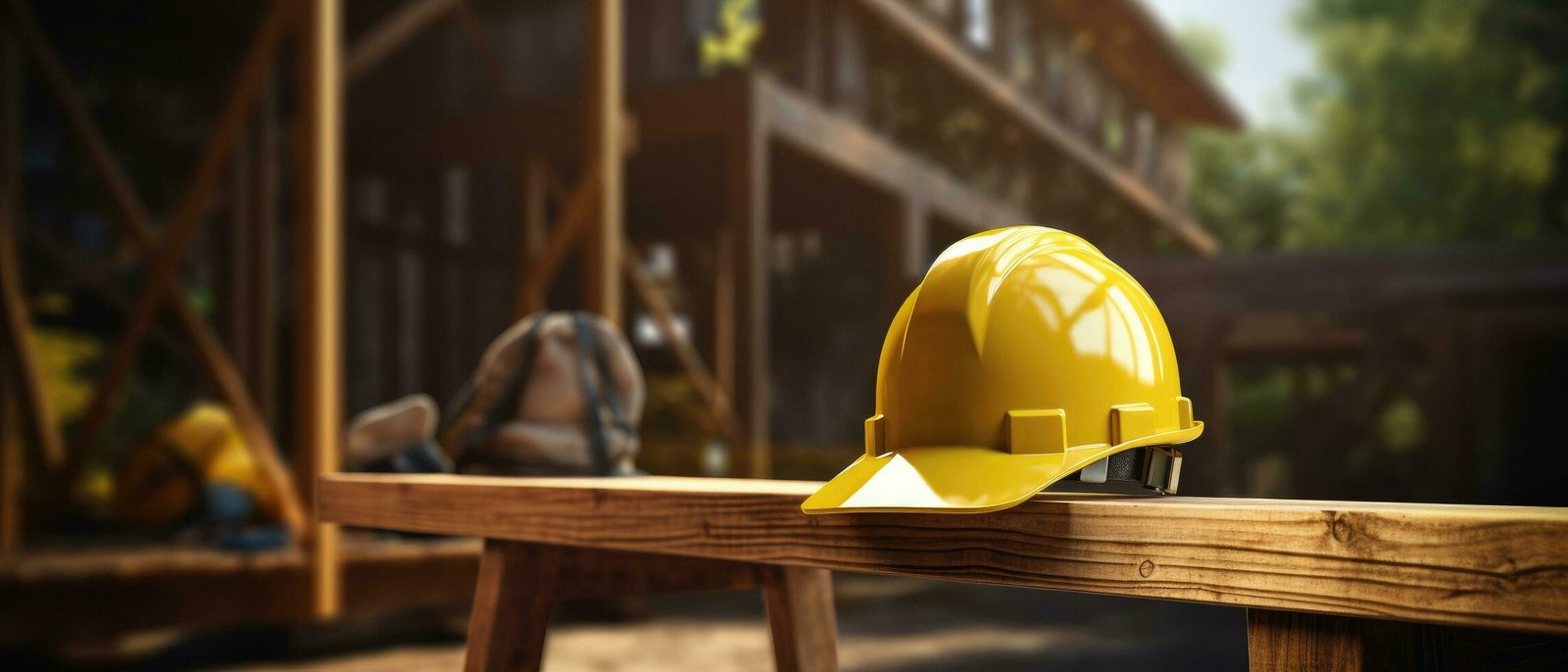 ai-generated-an-yellow-construction-hard-hat-on-a-wooden-bench-free-photo